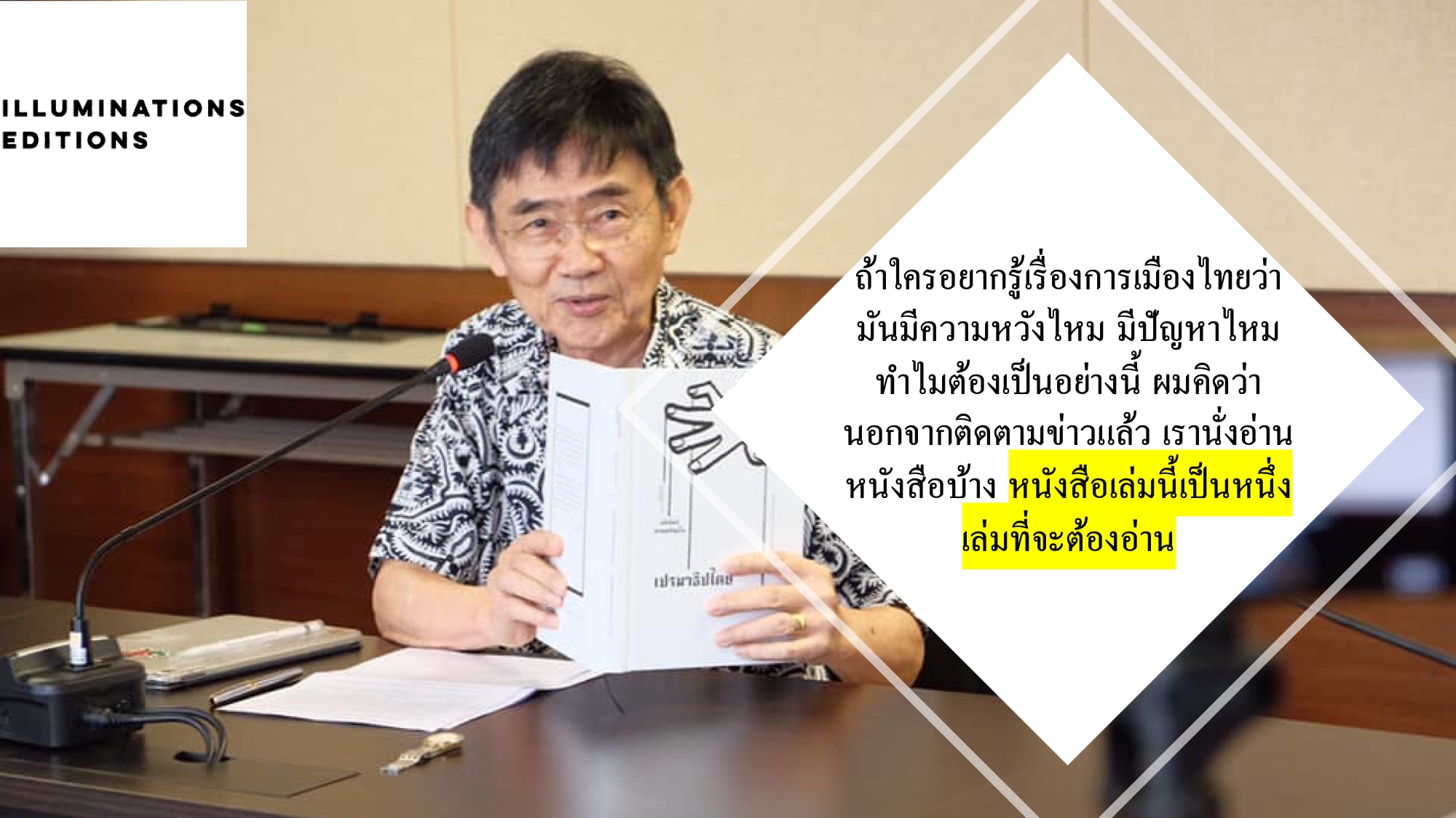 หนังสือ ‘เปรมาธิปไตย: การเมืองไทยระบอบไฮบริด’ จะเป็นคู่มือแห่งยุคสมัย ในการทำความเข้าใจระบอบการเมืองแบบไทยๆ ที่พิลึกพิลั่น ผสมผสาน และมหัศจรรย์ ซึ่งอาจช่วยให้คำตอบแก่ท่านผู้อ่านได้ว่าท่านพร้อมที่จะย้อนเวลากลับไปยุคพลเอกเปรม หรือจะก้าวเดินต่อไปและทิ้งยุคสมัยนี้ไว้ให้เป็นเพียงความหลังครั้งอดีต สุรชาติ บำรุงสุข กล่าวในคำนำตอนหนึ่งว่า“…ไม่ว่าท่านจะชอบหรือไม่ชอบพลเอกเปรม เราก็คงปฏิเสธนัยสำคัญของการเปลี่ยนผ่านใน”ระบอบประชาธิปไตยครึ่งใบ” ที่มีนายกเปรมเป็น”ตัวละครหลัก”ไม่ได้…” ก็เป็นเหตุผลเพียงพอแล้วที่หลายคนจะต้องอ่านหนังสือเล่มนี้ อ่านสารบัญและคำนำได้ที่ https://www.yumpu.com/xx/document/read/63038055/- อ่านบทสัมภาษณ์ผู้เขียนที่ https://www.facebook.com/notes/illuminations-editions/qa-เปรมาธิปไตย-การเมืองไทยระบอบไฮบริด/1260753630779956/ ![]() ![]() ![]() ![]() ![]() ![]() ![]() ![]() |